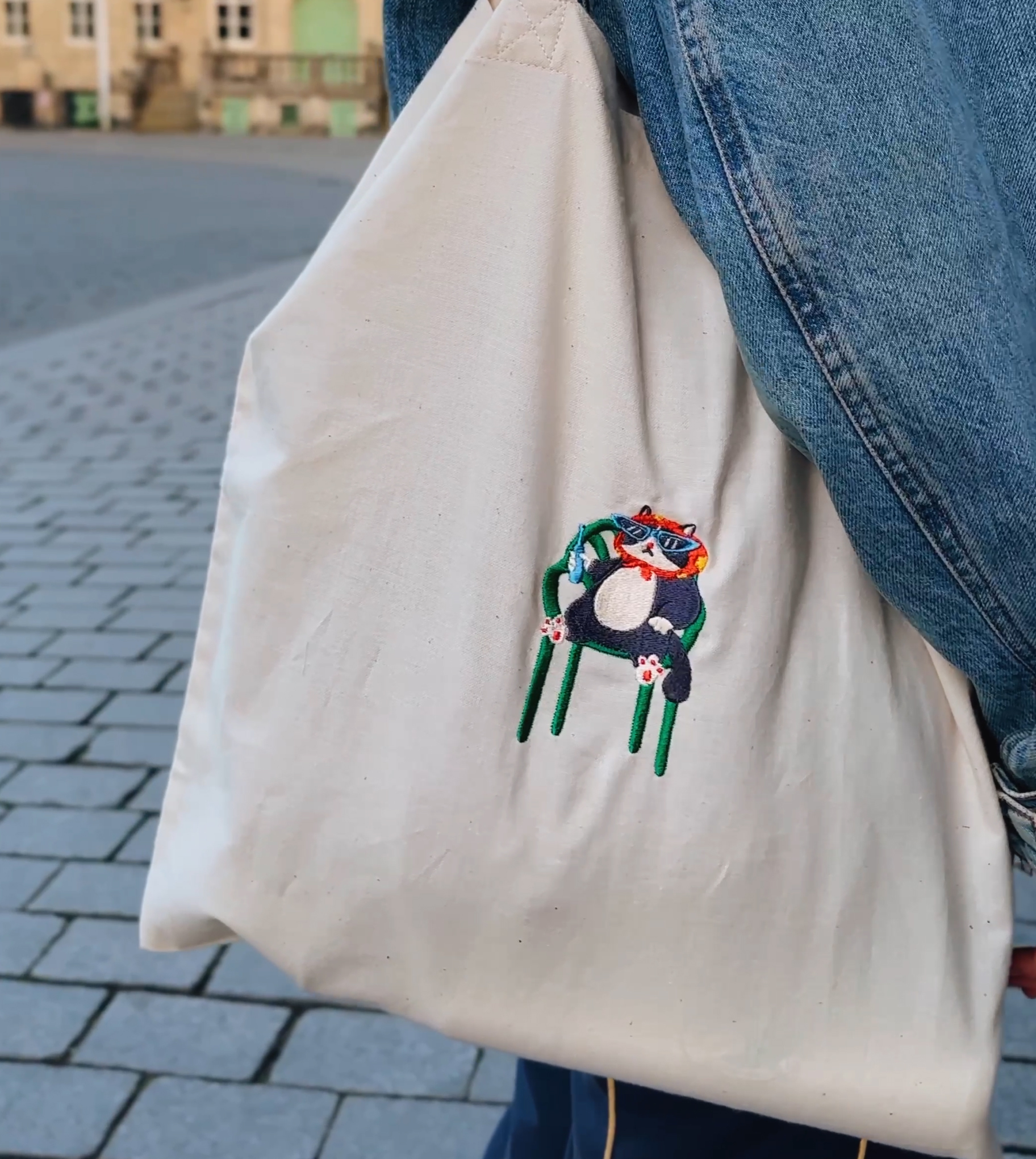 Om het borduursel mooi te houden: tasjes met de hand wassen en niet strijken over het borduurwerk.